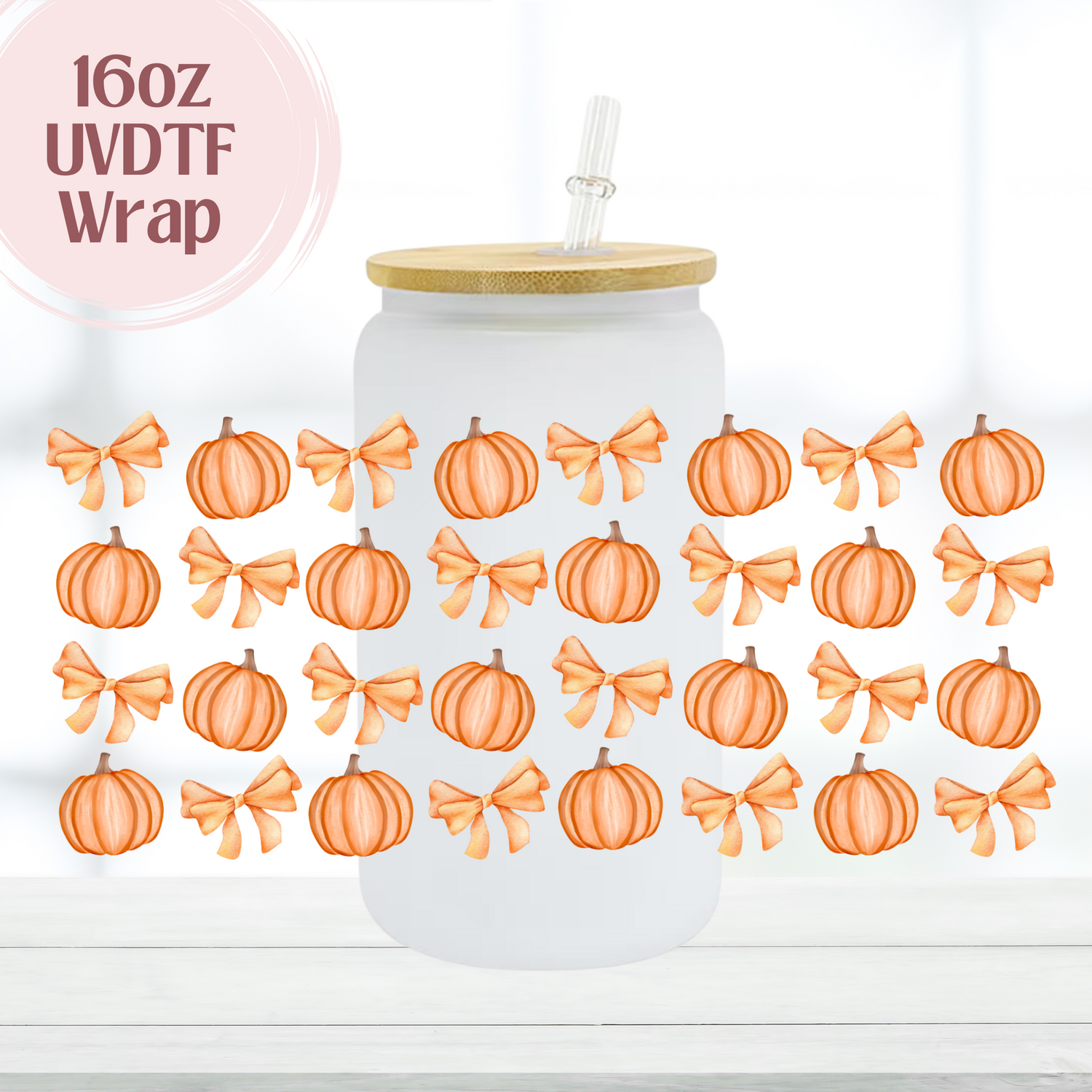 Orange Bows & Pumpkins 16oz UVDTF Cup Wrap