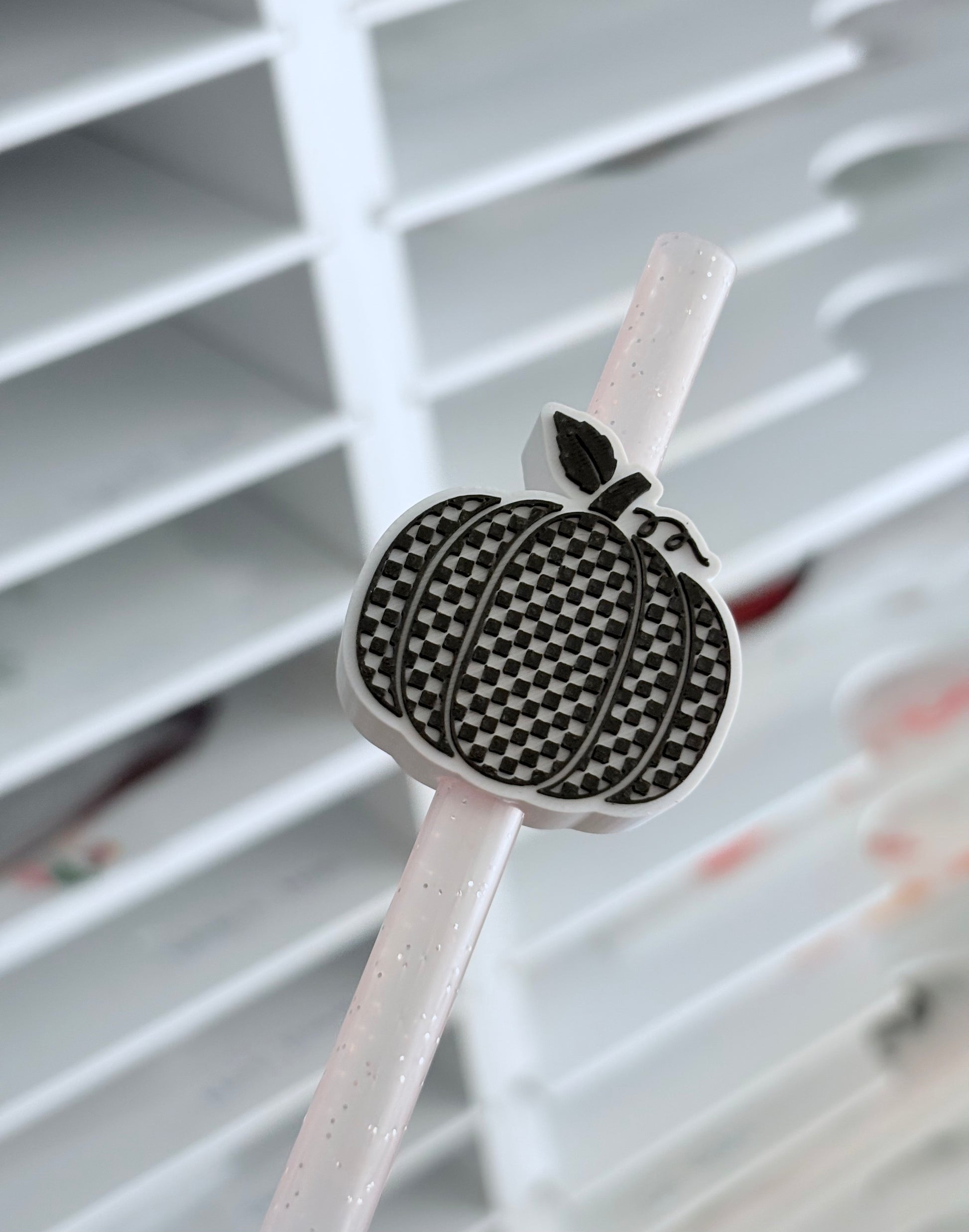 Checkered Pumpkin 3D Straw Topper