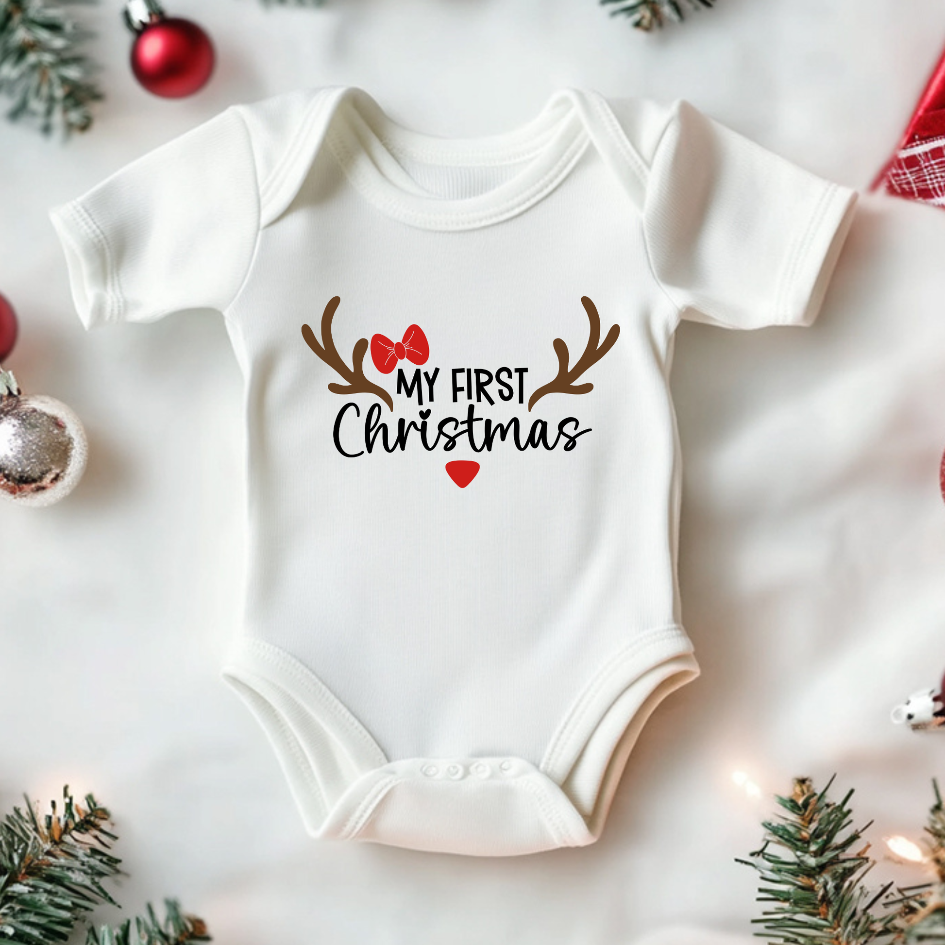 My First Christmas Reindeer Bow 4 inch DTF Print
