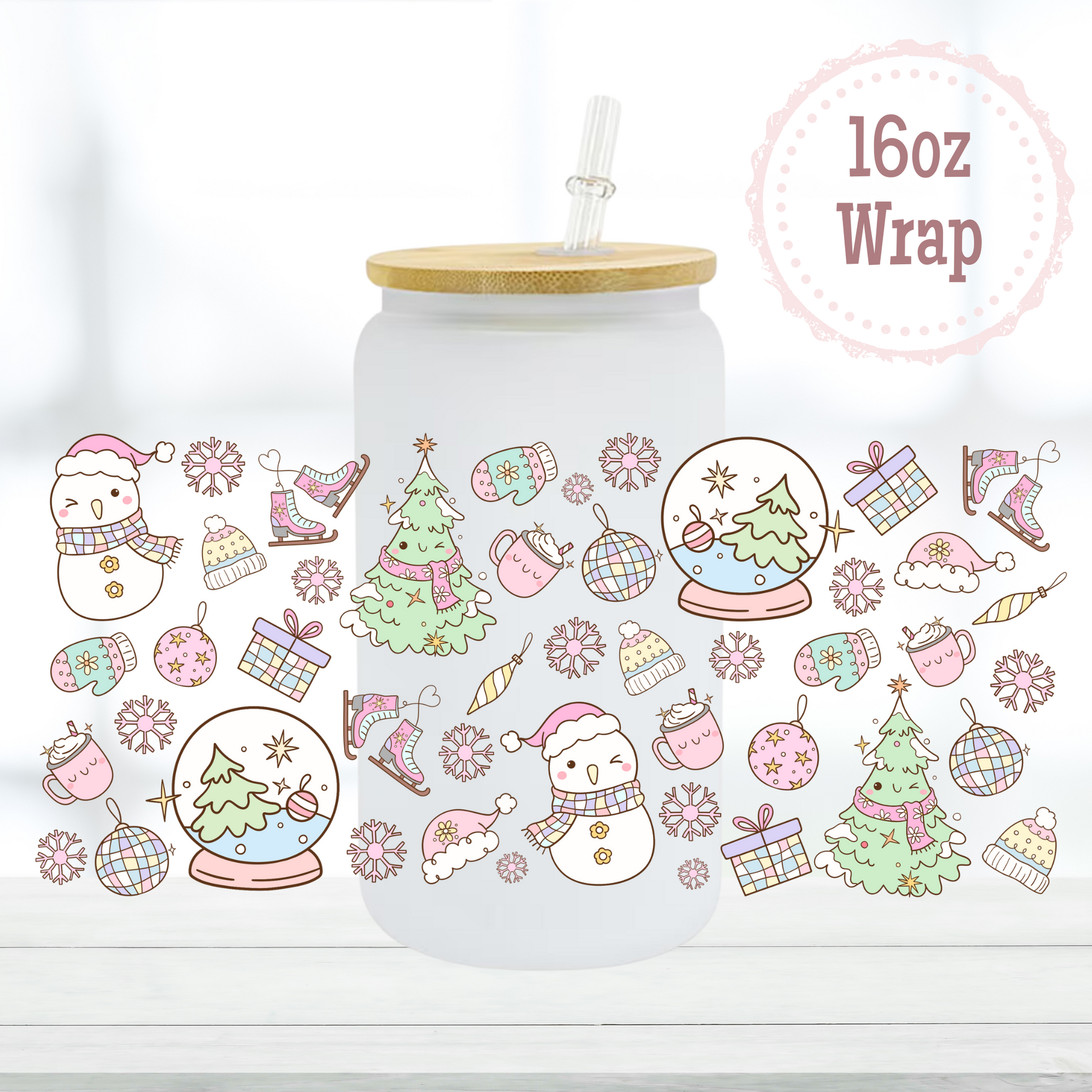 Pastel Cute Christmas 16oz UVDTF Cup Wrap