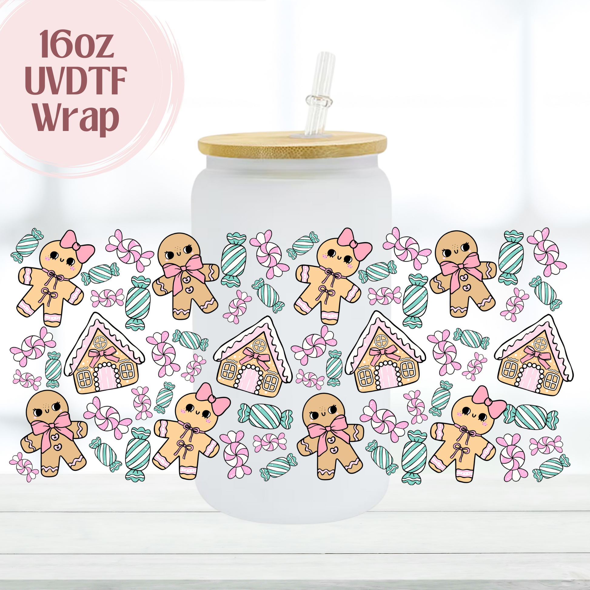 Gingerbreads Pink 16oz UVDTF Cup Wrap