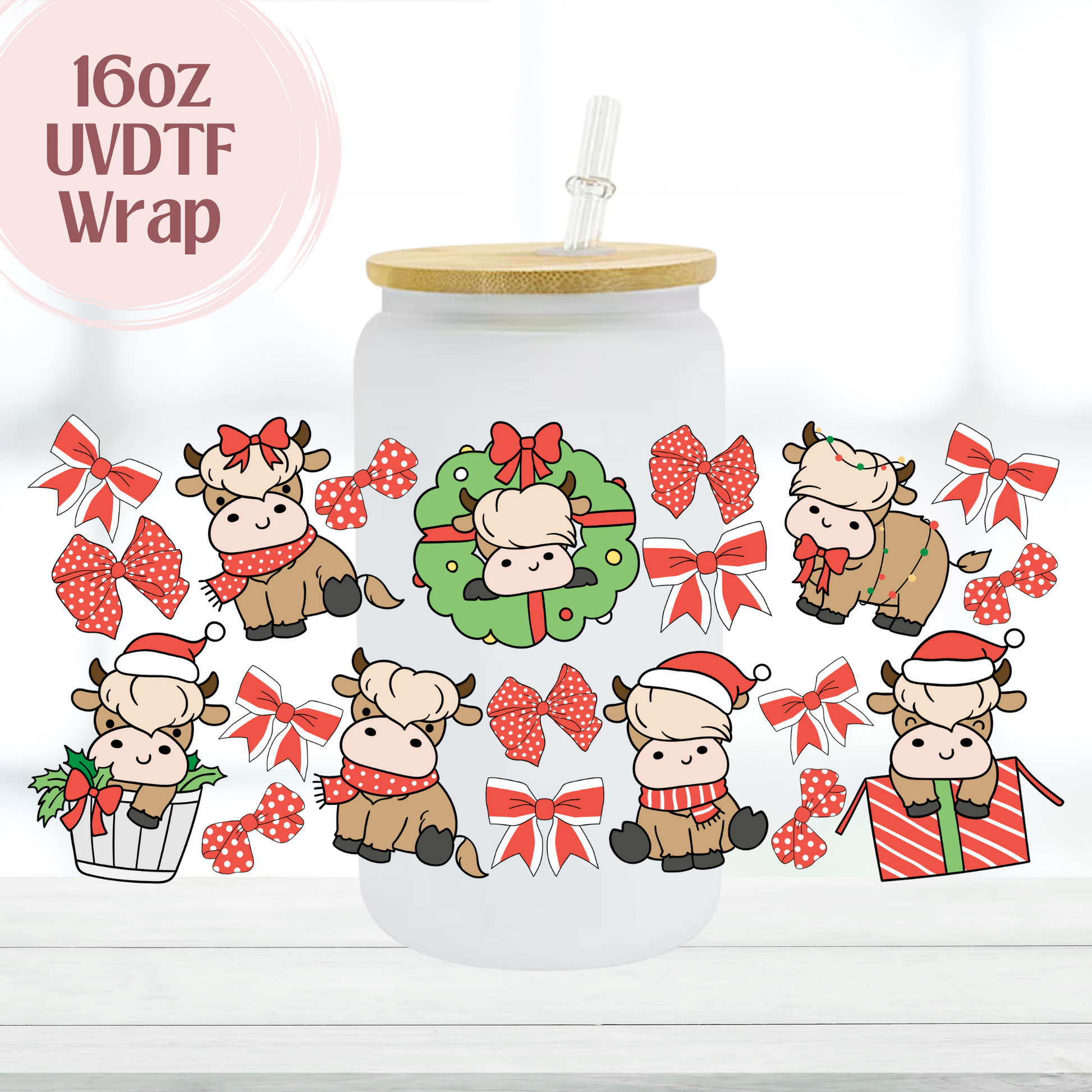Cute Highland Christmas 16oz UVDTF Cup Wrap
